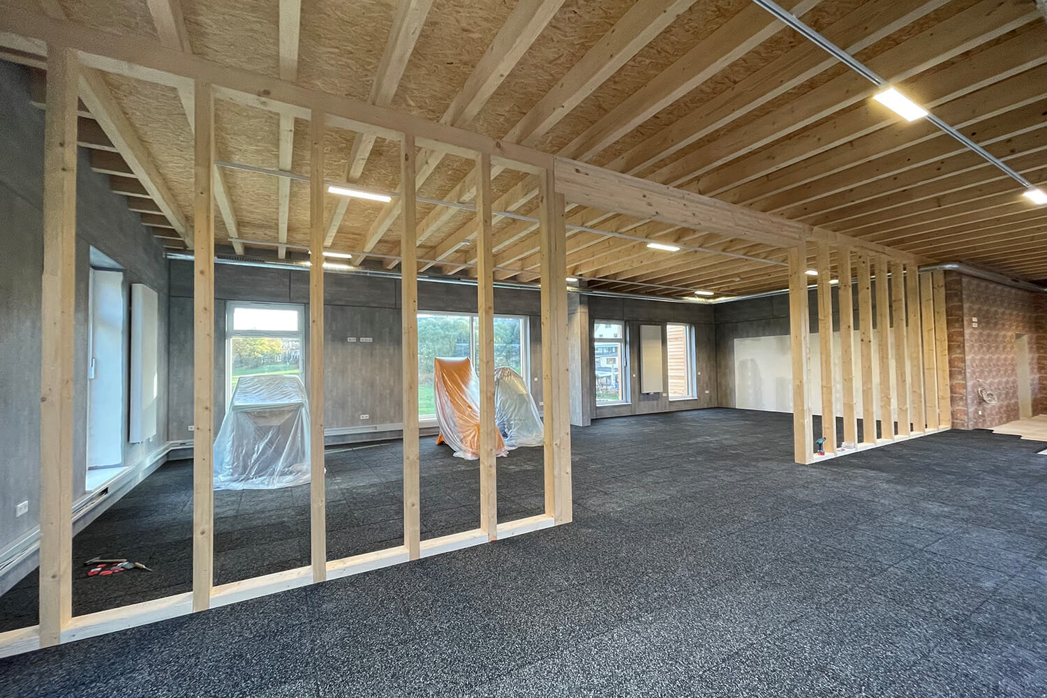 In order to be able to offer treatments in the basement and training on the upper floor at the same time, the issue of sound insulation played an important role in the planning.