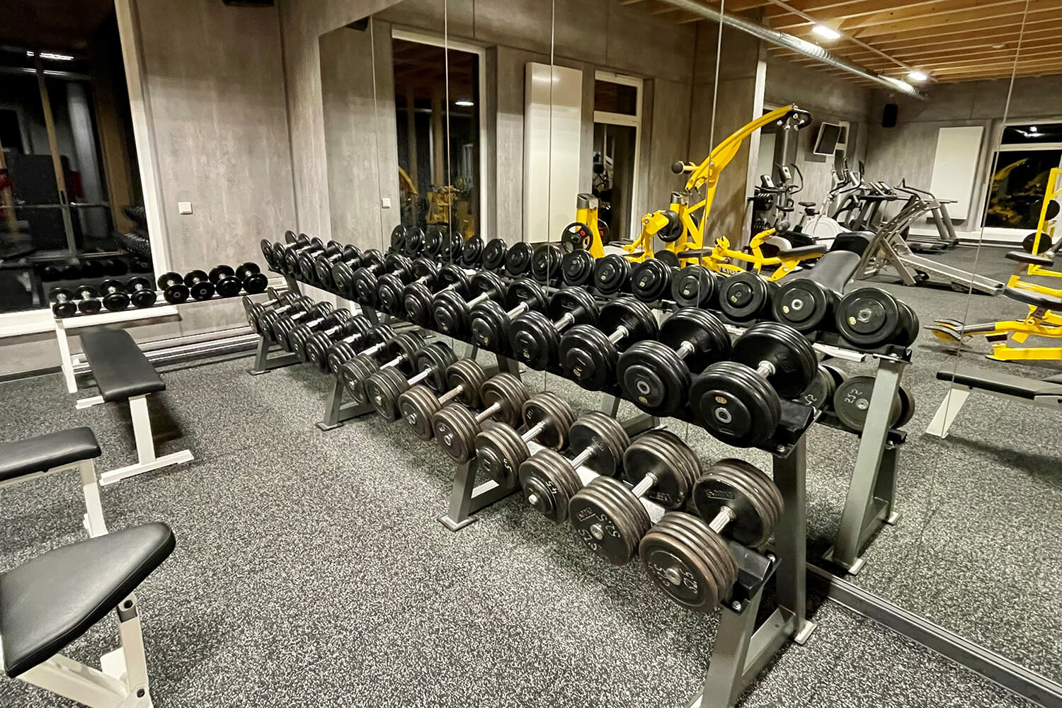 A small gym completes the offer next to the treatment rooms. The studio quickly became very popular, so it quickly became clear that the premises would have to be expanded.. Andreas Bertsch decided to add a storey to the building in order to be able to build a new and significantly larger gym above the treatment rooms.